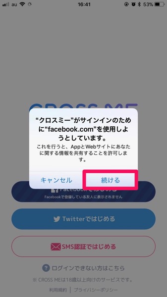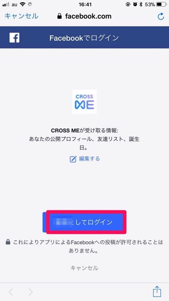 「クロスミーがサインインのためにfacebook.comを使用しようとしています」が表示されたら