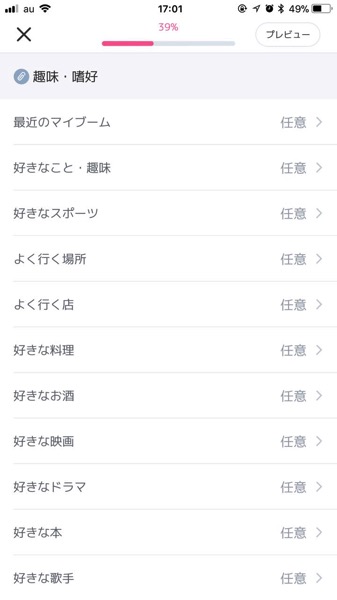 CROSS ME(クロスミー)では趣味趣向をいれていく項目が多いです。