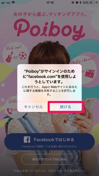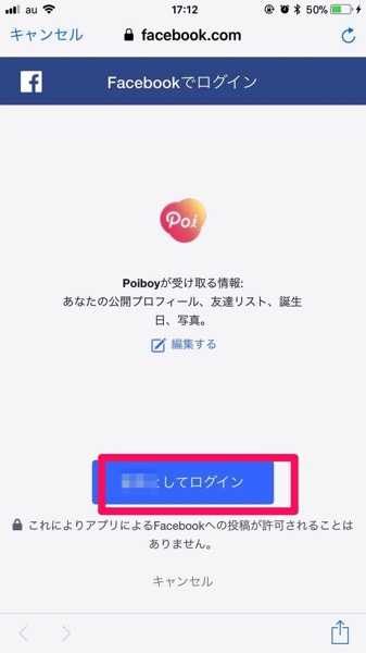 「Poiboyがサインインのためにfacebook.comを使用しようとしています」の表示がでたら