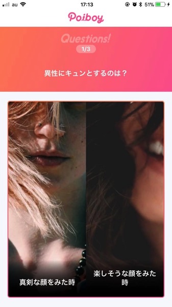 男性側は質問答えて、答えがマッチするとPoiboyのポイスコアがプラスされていきます。