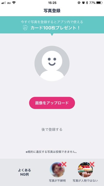 といっても自分の写真さえ用意しておけば1〜3分もかからずにささっと登録ができます。